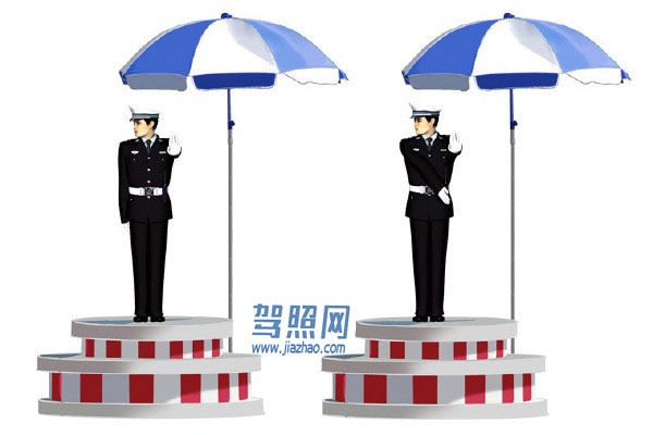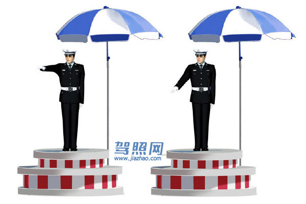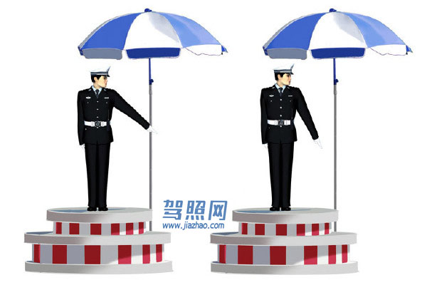 30、 这一组交通警察手势是什么信号?