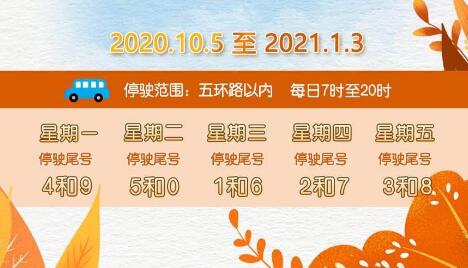机动车号牌(含临时号牌)最后一位阿拉伯数字(以下简称尾号)对应具体限行日期的原则,在工作日禁止相应机动车辆通行,具体为: