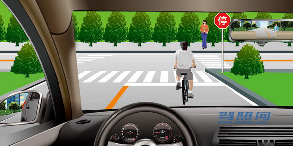 51、 如图所示,在这种情况下通过路口,驾驶人应减速或者停车观察,以应对两侧路口可能出现的危险。