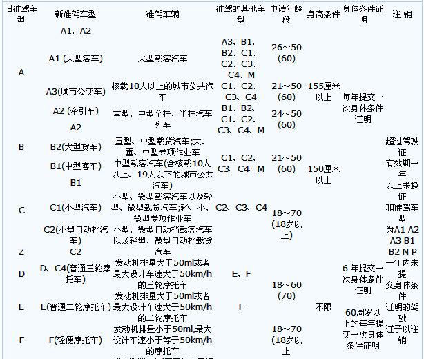 - 新、旧驾驶证准驾车型对照表