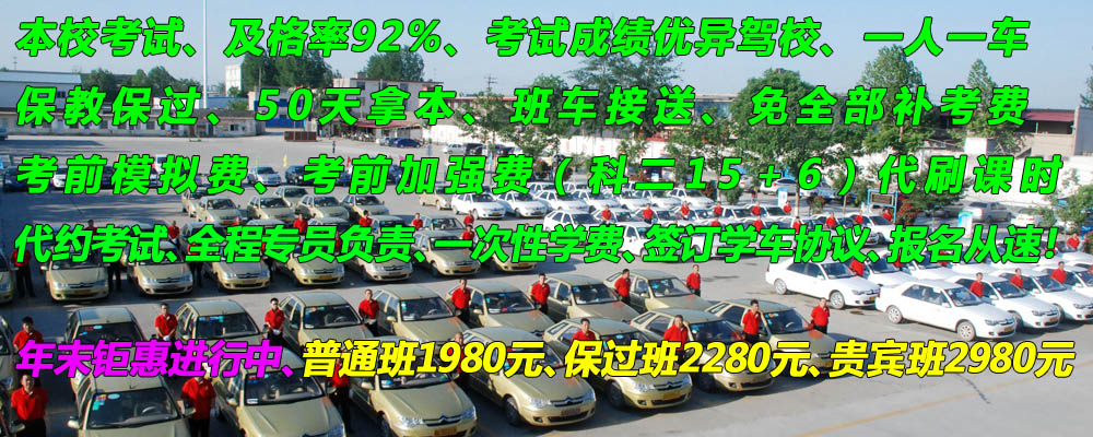 本校练车、本校考试”保教保过”一人一车一教练、星级教练执教”首推教练员责任制、奖惩制度即学员考试及格率与教练员工资挂钩、及格率高”考试快”拿证快”一次性学费”签订学车培训协议”班车接送”代刷理论课时、代约各项考试、免全部科目补考费、考前模拟费、考前加强费、课时灵活交叉培训、考试快、培训快、拿证快、