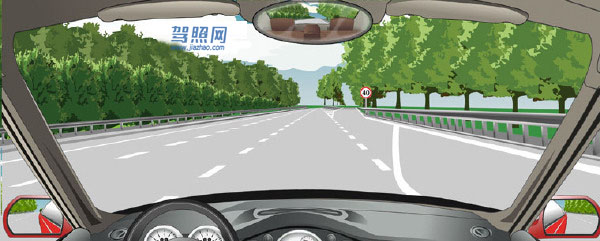 82、单选 如图所示,在高速公路同方向三条机动车道中间车道行驶,车速不能低于多少?