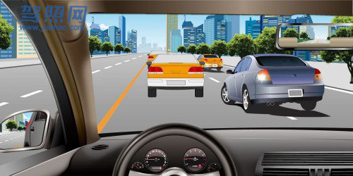 44、单选 如图所示,车辆在拥挤路段排队行驶时,遇有其他车辆强行穿插行驶,以下说法正确的是什么?