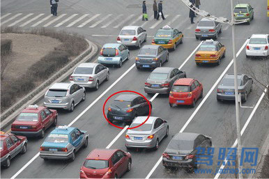 80、判断 如图所示,红圈标注的深色车辆的做法是违法的。