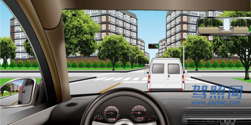 53、单选 如图所示,在这种情况下通过路口,交替使用远近光灯的目的是什么?