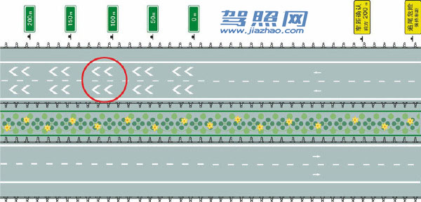 34、单选 路面上白色虚线和三角地带标线组成的是什么标线?